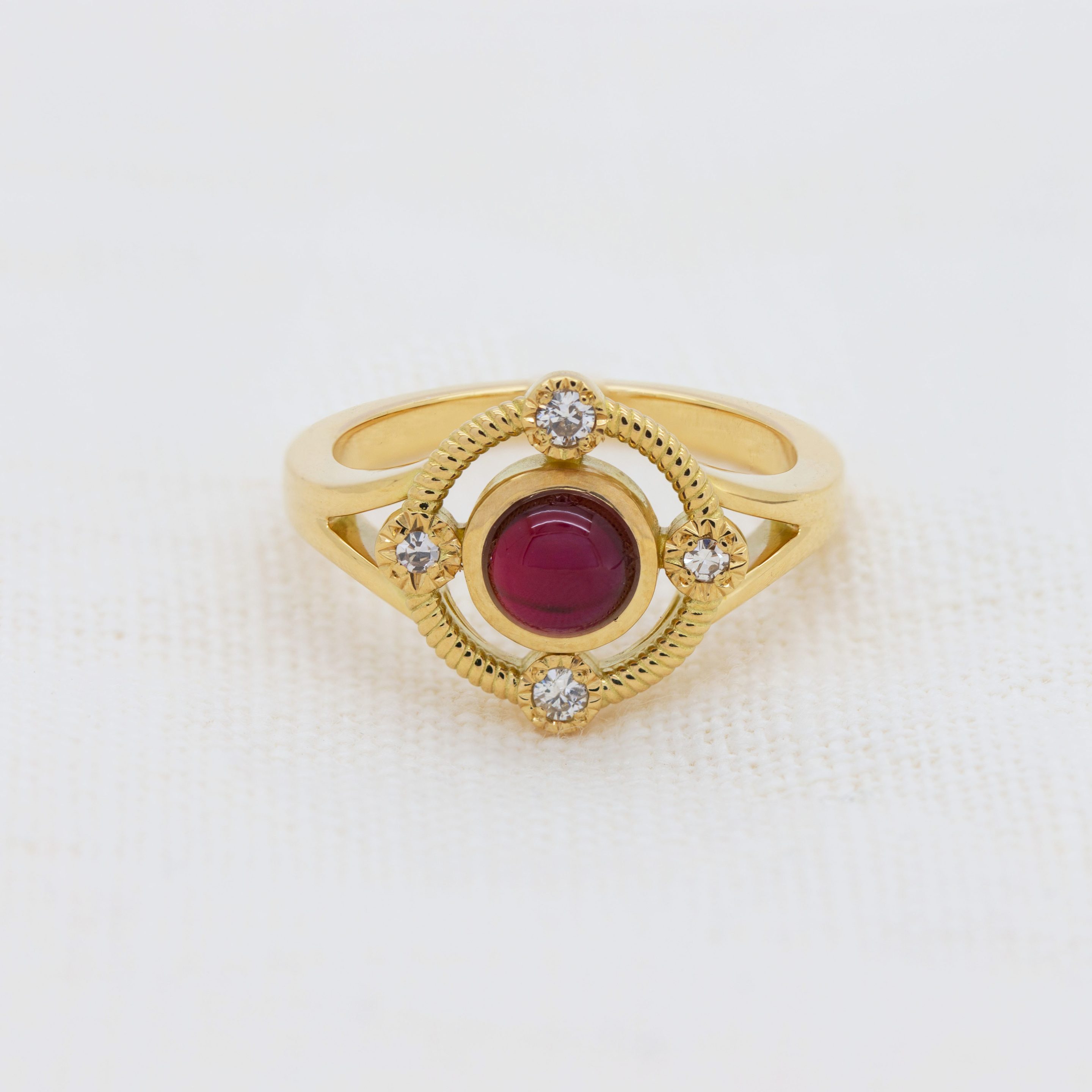 A bespoke 18ct yellow gold, ruby and diamond remodelled ring for Linda.